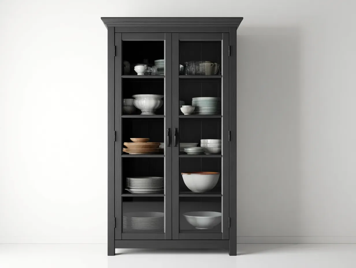 Ante frontali che permettono un accesso diretto e pratico agli oggetti. Superfici trasparenti ideali per l'organizzazione visiva di stoviglie e accessori da cucina. Design classico sobrio che si integra facilmente in cucine tradizionali e ambienti domestici raffinati.